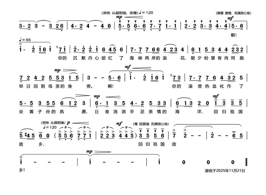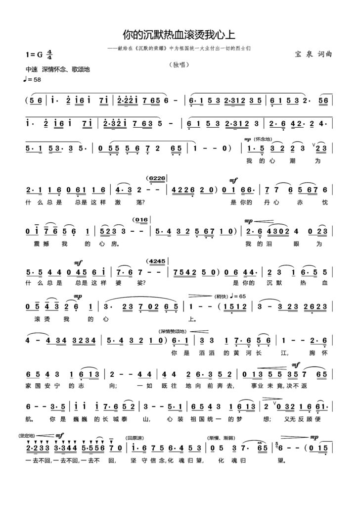 13 12 月 你的沉默热血滚烫我心上 Posted at 09:39h in 未分类 by baoq chen 歌曲《你的沉默热血滚烫我心上》 (独唱) 宝 泉 | 词曲 思 语 | 朗诵 叶真名 | 编曲 莫 拟 | 演唱(流行)https://bqpoetry-songs.com.au/rapeedak/2025/12/思语朗读歌词《你的沉默热血滚烫我心上》.mp3歌词朗诵:思语https://bqpoetry-songs.com.au/rapeedak/2025/12/《你的沉默热血滚烫我心上》宝泉曲、叶真名编曲-男声版-G调.mp3演唱:莫拟(流行歌手) Post Views: 117